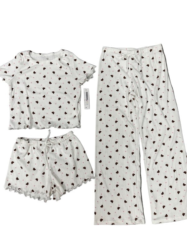 Girls Printed Lounge 3 Pc Short Sleeve Top Pants a
