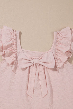 Textured Bow Knot Frilled Butterfly Sleeve Blouse
