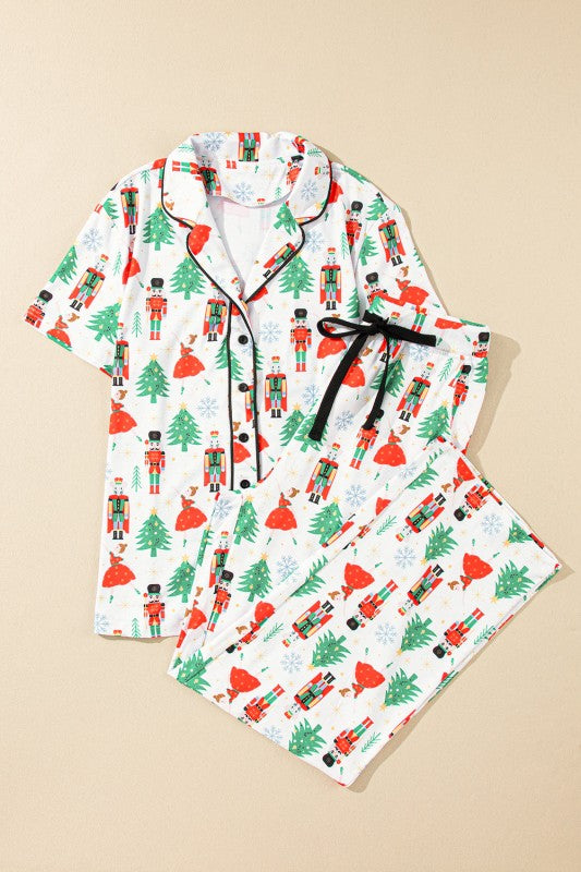 Christmas Trees & Nutcracker Buttoned Pajama Set